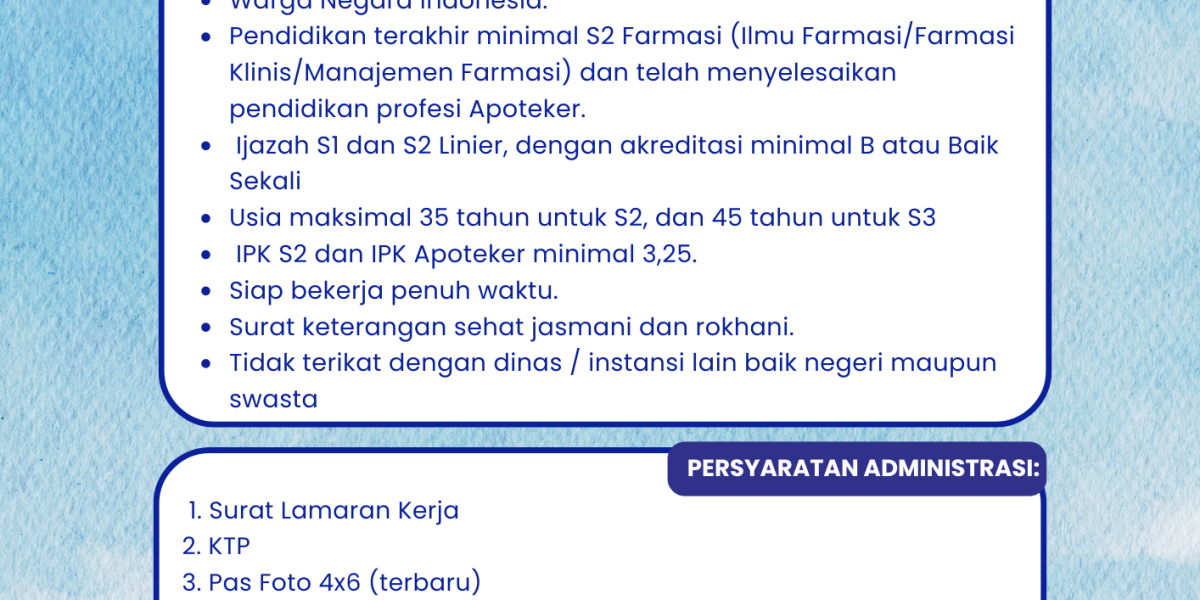 2. Pendidikan terakhir minimal S2 Farmasi (Ilmu Farmasi/Farmasi Klinis/Manajemen
