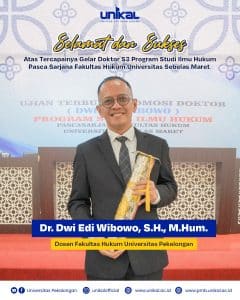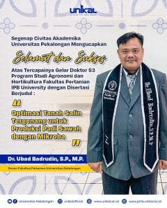 Tiga dosen Unikal baru-baru ini telah mencapai gelar Doktor S3 diantaranya Dr. Dwi Edi Wibowo.,S.H., M.Hum (Kaprodi Magister Hukum), Dr. Ubad Badrudin, S.P., M.P ( Dekan Fakultas Pertanian) serta Dr. Andi Kushermanto, S.E., M.M ( Rektor Universitas Pekalongan)